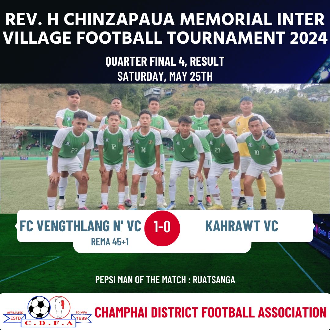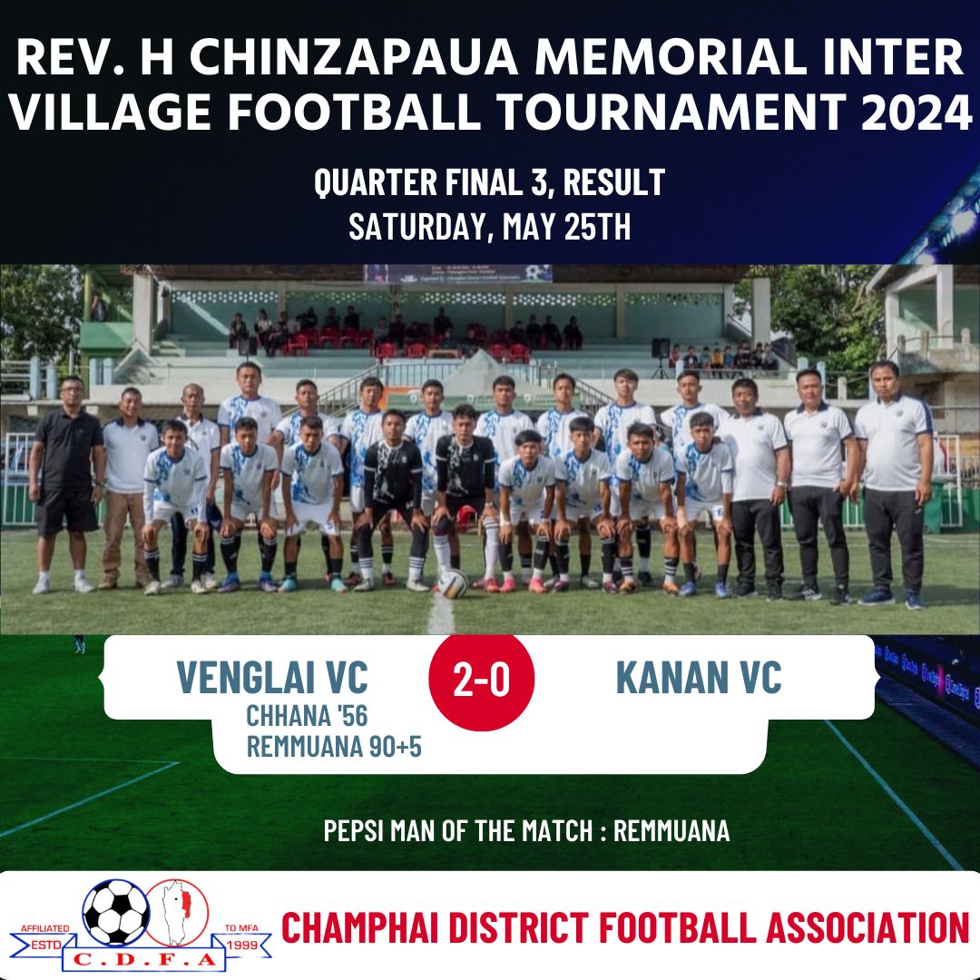 Rev Chinzapauva memorial Inter Village Football Tournament khelh mekah vawiin khan Venglai leh Vengthlang North-in an khingpuite hnehin Semfinal an inhlangkai.
